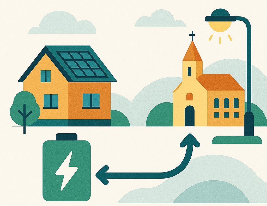 - Členové energetické komunity, kteří disponují bateriovými uložišti a v danou chvíli energii nepotřebují pro vlastní spotřebu, ji mohou nabídnout k využití městu / obci.